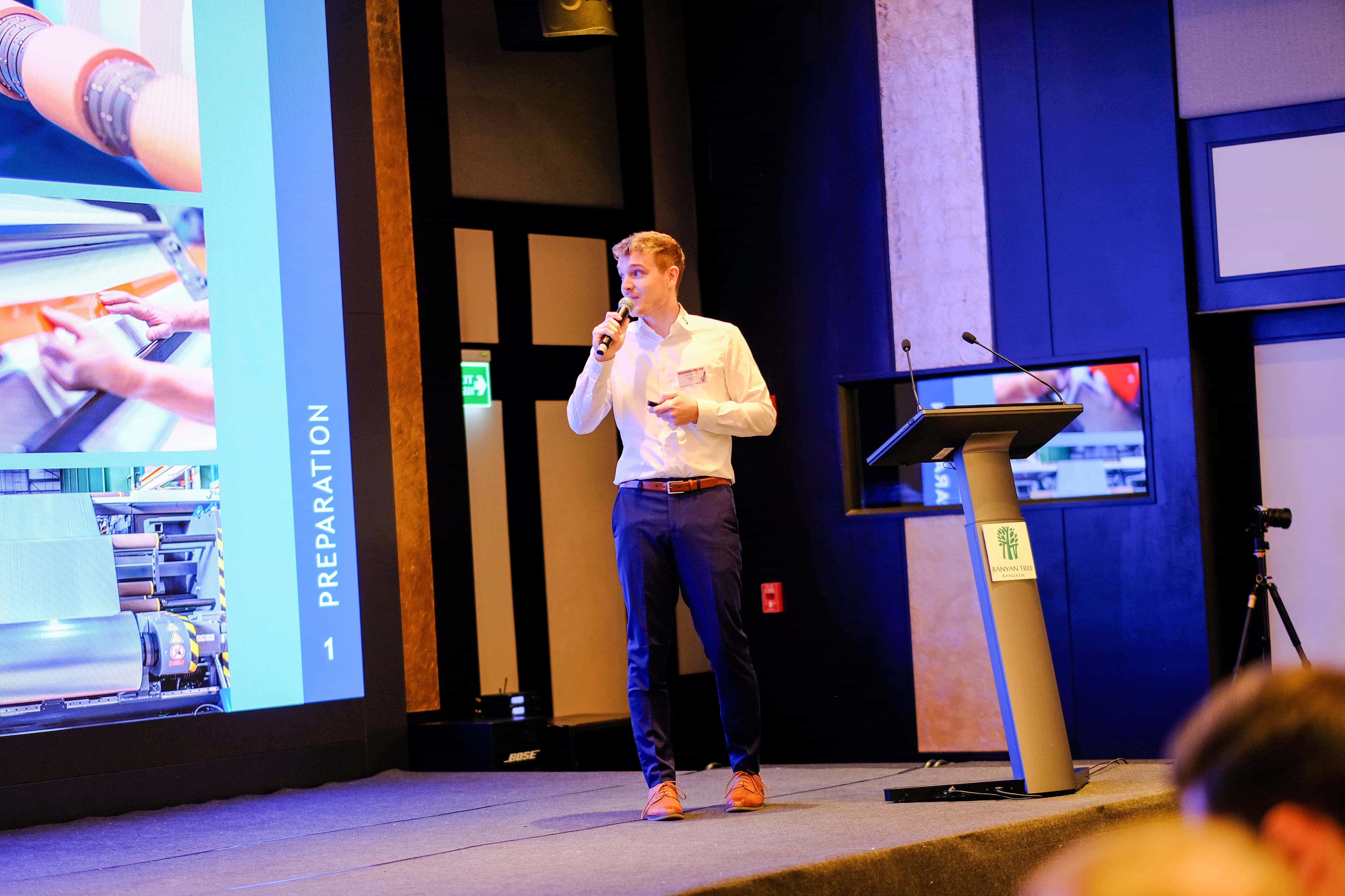 As part of the recently agreed cooperation between Kampf, Atlas and W&H Asia Pacific, we were also represented with a keynote presentation. Julian Schröder, Sales Manager at Kampf, and Barrie Homewood, Sales Director at Atlas, gave a presentation on “Slitting the perfect roll” and answered numerous questions about our technologies and solutions.