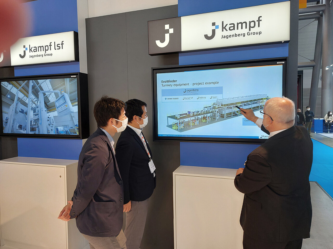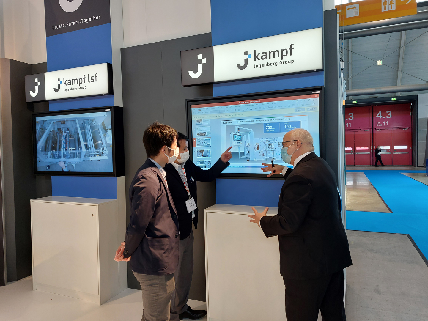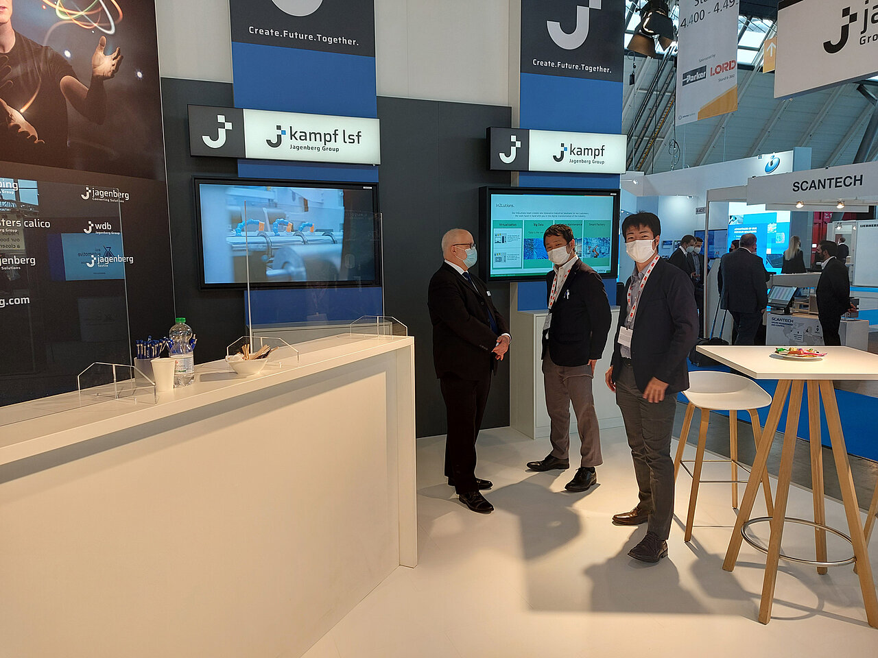 Aufgrund der aktuellen Corona-Situation ist ein reduziertes Messe-Team zur Messe gefahren. Dieses repräsentierte die Firmen Jagenberg Converting Solutions, Kampf, Kampf LSF und Lebbing Automation & Drives.