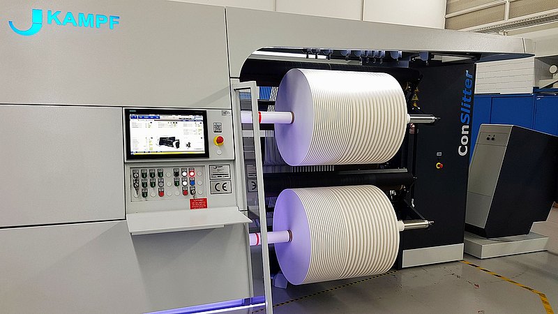 Eines dieser Produkte sind Trinkhalme: ursprünglich echte Natur-Strohhalme und heute weitgehend aus Kunststoff gefertigt, werden diese seit ca. 2-3 Jahren verstärkt durch Papier-Trinkhalme ersetzt. Schon 2018 baute KAMPF für einen amerikanischen Kunden den ersten Rollenschneider speziell für diese Anwendung und feilte anschließend daran, die Prozesse innerhalb der Maschine weiter zu verbessern. Schließlich werden auf den Maschinen Schnittbreiten von gerade einmal 7,8 mm aufwärts gefahren. Das hat zur Folge, dass teilweise mehr als 80 Bahnen nebeneinander laufen. Heute verfügt KAMPF mit der ConSlitter-Serie über Maschinen, welche die hohen Anforderungen an Schnittqualität, Rollenaufbau und Stabilität bei hohen Laufgeschwindigkeiten erfüllen. Die aktuelle Conslit III, sowie deren Nachfolger ConSlitter CHRO BlackLine verfügen über automatische Querschneid- und An-/Zuklebesysteme, die das Arbeiten an der Maschine nicht nur deutlich erleichtern, sondern auch wesentlich effizienter machen. Neben mehreren bereits ausgelieferten Maschinen baut KAMPF nun weitere für internationale Kunden.